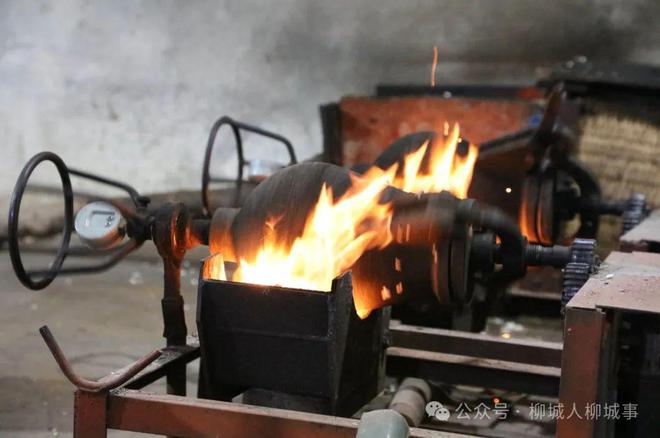 妻子負(fù)責(zé)爆米花,用的是傳統(tǒng)的鐵罐,把米或者玉米放到鐵罐里,將鐵罐放倒在特制的火爐之上,轉(zhuǎn)動(dòng)鐵罐,加柴火猛火燒,隨著“嘣”的巨響和一朵“蘑菇云”,就會(huì)在空氣中彌漫熟悉的爆米花味道。