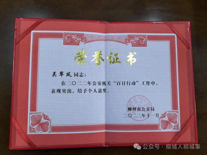 2022年吳翠鳳在公安機(jī)關(guān)“百日行動(dòng)”工作中表現(xiàn)突出,給予個(gè)人嘉獎(jiǎng),2023年獲得了柳州市優(yōu)秀輔警的榮譽(yù)稱號(hào)。今年春節(jié),她也依然堅(jiān)守崗位,以實(shí)際行動(dòng)踐行職責(zé)使命。
