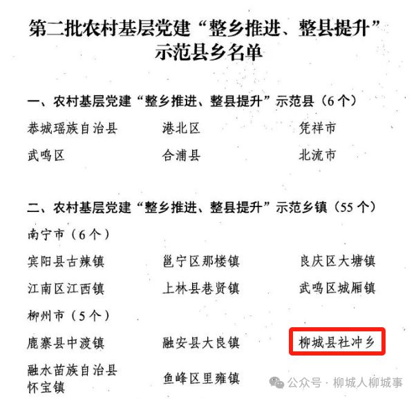 近日,自治區(qū)基層組織建設(shè)協(xié)調(diào)領(lǐng)導(dǎo)小組公布了一批農(nóng)村基層黨建“整鄉(xiāng)推進、整縣提升”示范縣鄉(xiāng)名單,其中柳城縣社沖鄉(xiāng)上榜。