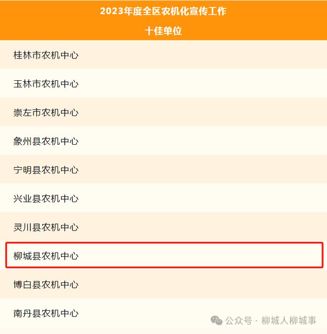 近日,《廣西壯族自治區(qū)農(nóng)業(yè)機械化服務(wù)中心關(guān)于表揚2023年度全區(qū)農(nóng)機化宣傳工作十佳單位和十佳個人的通報》公布,通報表揚了2023年度全區(qū)農(nóng)機化宣傳工作十佳單位和十佳個人。其中,柳城縣農(nóng)業(yè)機械化管理中心榮獲“2023年度全區(qū)農(nóng)機化宣傳工作十佳單位”稱號。