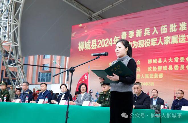 縣人武部部長武曉雷宣讀2024年春季征兵入伍命令。柳城縣領(lǐng)導(dǎo)和相關(guān)負責(zé)人為新兵代表頒發(fā)入伍通知書。新兵代表曾楊 懿發(fā)言。曾楊 懿說,到部隊后,他將以服從命令為天職,努力學(xué)習(xí),刻苦訓(xùn)練;尊敬領(lǐng)導(dǎo)、團結(jié)戰(zhàn)友;勇當重任,為國家的和平與安寧扛好槍,站好崗;爭當優(yōu)秀士兵,爭當英雄模范,為父老鄉(xiāng)親增光添彩。