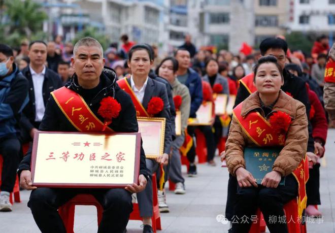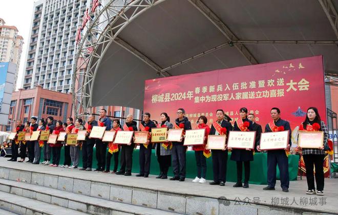大會宣讀了2023年度柳城縣立功人員名單。柳城縣領導和相關負責人為立功軍屬送喜報、牌匾、鼓勵獎、鼓勵金。