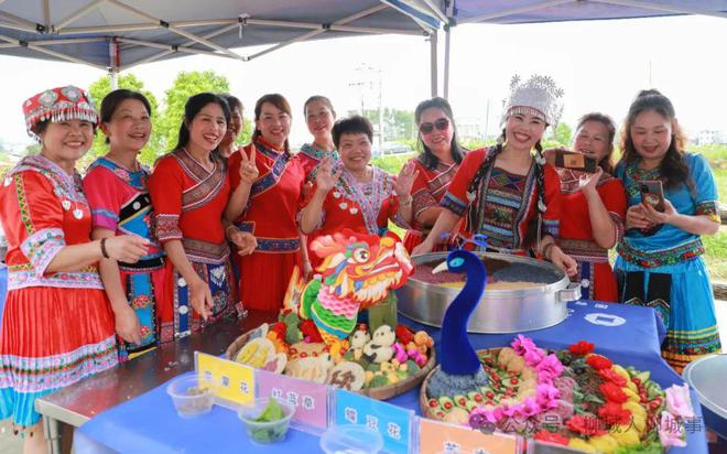 現(xiàn)場(chǎng)還設(shè)置了特色農(nóng)產(chǎn)品集市、壯家美食手作體驗(yàn)、團(tuán)扇制作、對(duì)山歌、百家宴等豐富多彩的活動(dòng),讓眾多游客們上前游玩體驗(yàn)。