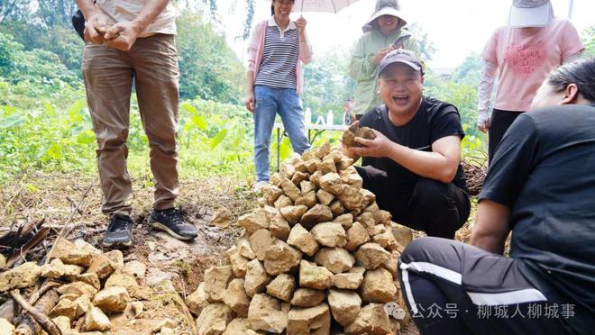 “廣西科目四”窯雞比賽氣氛最緊張也最考驗(yàn)技術(shù)?;顒?dòng)現(xiàn)場(chǎng),九個(gè)窯洞各居其位,各組選手都是小心翼翼地一點(diǎn)點(diǎn)往上壘泥塊,封頂?shù)臅r(shí)候尤其要注意,要不然,一不小心就前功盡棄了。其中一個(gè)窯好不容易封頂了,大家好不開(kāi)心,鄭重其事地舉行了一個(gè)小小的封頂儀式。