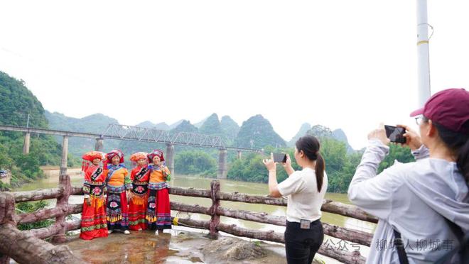 參加活動(dòng),打卡美景也是必不可少的。江邊的觀景臺(tái)、涼亭、榕樹(shù)下,都成了熱門(mén)的拍照點(diǎn)——姑娘們穿上美麗的衣裳,將自己婀娜多姿的身影融入了這如詩(shī)如畫(huà)的山水中;老人們也攜手登上觀景臺(tái),換上鮮艷的民族服裝,讓這里獨(dú)有的鐵橋和綠水青山,與深厚的姐妹情同時(shí)定格成快樂(lè)的回憶。