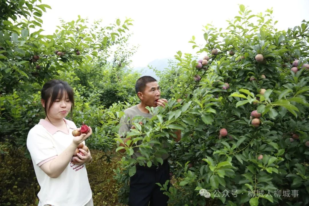 “柳城人5月必吃的水果當(dāng)然是胭脂李啦!”5月17日,柳城縣龍頭鎮(zhèn)新村?村委副主任楊漫來到村里的胭脂李果園,拍攝一個小視頻,為村里的胭脂李產(chǎn)業(yè)賣力吆喝。