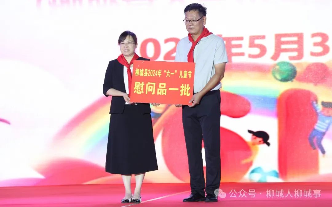 在歡慶“六一”國際兒童節(jié)之際,晚會對學(xué)生代表進(jìn)行了節(jié)日慰問,并向柳城縣文昌小學(xué)教育集團(tuán)贈送了慰問品。