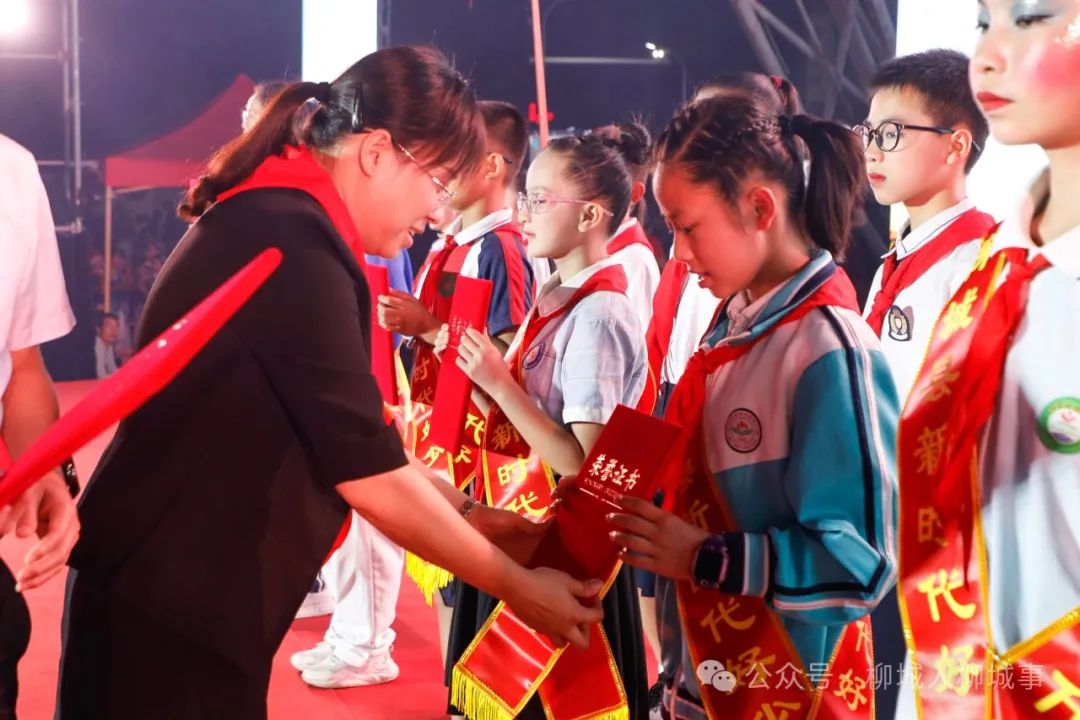 晚會還對柳城縣沖脈中心小學(xué)的學(xué)生韋羿帆、柳城縣東泉華僑農(nóng)場學(xué)校的學(xué)生羅熙雯、柳城縣馬山中心小學(xué)的學(xué)生梧可馨等10名2024年柳城縣“新時代好少年”進(jìn)行了頒獎。晚會還舉行了柳城縣文史館、檔案館講解員頒發(fā)聘書儀式,文昌小學(xué)的林欣、黃歆雅、莫沄綺等6位同學(xué)獲選聘為首批柳城縣文史館、柳城縣檔案館“紅領(lǐng)巾講解員”。