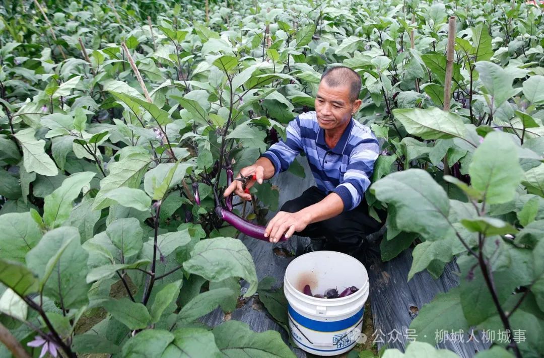 5月31日,柳城縣太平鎮(zhèn)龍興村龍排屯村民劉章遷的蔬菜種植基地,小編看到兩塊相鄰的菜地里,飽滿油亮的茄子、豆角掛滿枝頭和藤蔓。豆角剛剛開始上市,主要賣給本地有客商用于腌制酸豆角,批發(fā)價格約為1.3元每斤。茄子批發(fā)給本地的農(nóng)貿(mào)市場和柳州海吉星市場,價格在2元每斤上下浮動,由于口感軟糯,處于供不應(yīng)求狀態(tài)。