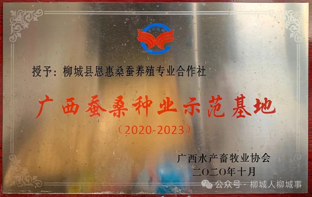 2020年,柳城縣恩惠桑蠶養(yǎng)殖專業(yè)合作社在獲得了商務部規(guī)?;⒓s化桑蠶示范基地建設資金的支持,被廣西水產(chǎn)畜牧業(yè)協(xié)會評為“廣西桑蠶種業(yè)示范基地”,是柳州市農(nóng)業(yè)科學研究所桑蠶試驗示范基地、人工飼料養(yǎng)蠶示范點,也是柳城縣新型職業(yè)農(nóng)民培育示范基地。