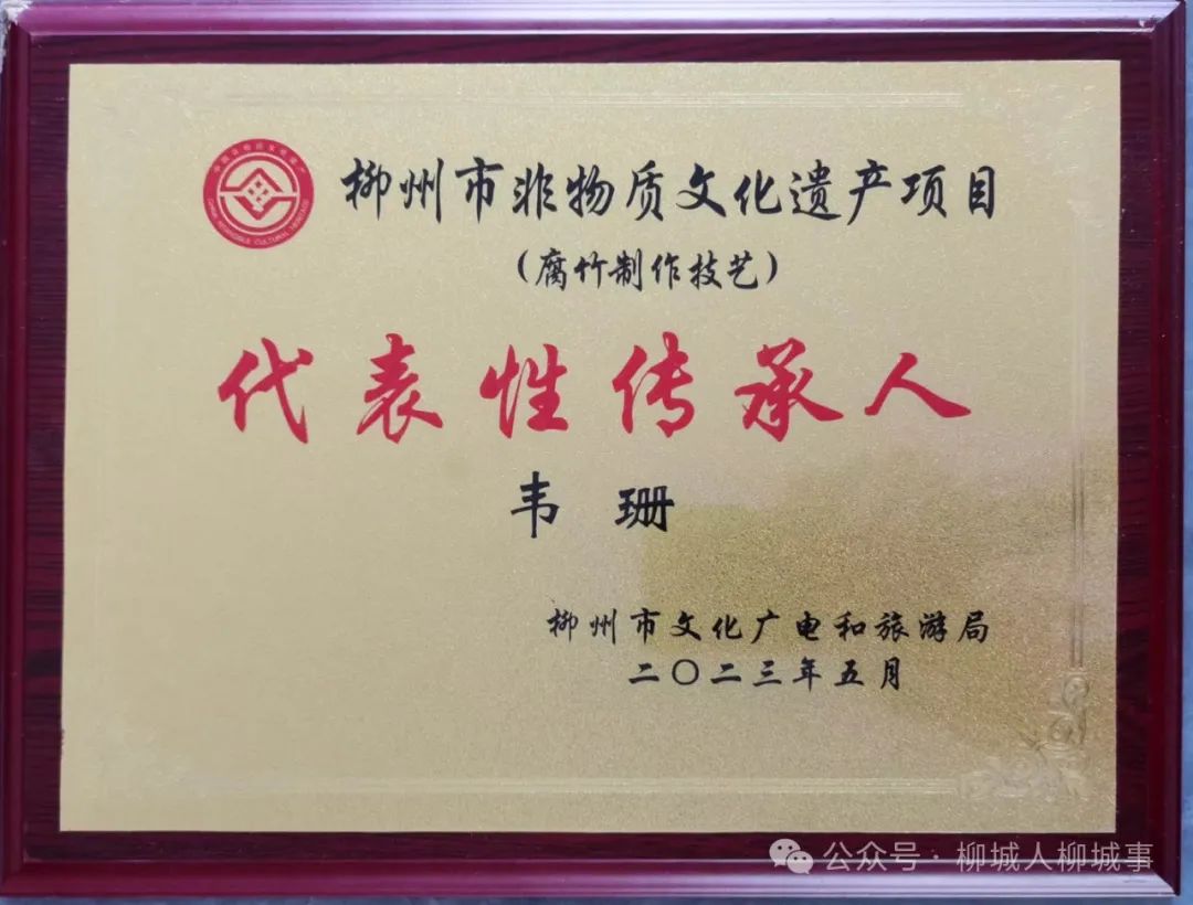 每一片腐竹都傳遞了傳統(tǒng)工藝的獨到與價值,每一道工序也都凝聚著手工匠人的心血與智慧。2023年10月,柳城客家腐竹制作技藝被列入自治區(qū)級非物質(zhì)文化遺產(chǎn)。同年,企業(yè)榮獲第三屆廣西農(nóng)民工創(chuàng)業(yè)大賽柳州市選拔賽創(chuàng)業(yè)明星組一等獎、第三屆廣西農(nóng)民工創(chuàng)業(yè)大賽明星組三等獎;韋珊被評為柳州市非物質(zhì)文化遺產(chǎn)項目(腐竹制作技藝)代表性傳承人。今年以來,韋珊又獲評第一屆柳城縣“十佳返鄉(xiāng)創(chuàng)業(yè)農(nóng)民工” 及柳州市鄉(xiāng)村工匠等榮譽稱號。