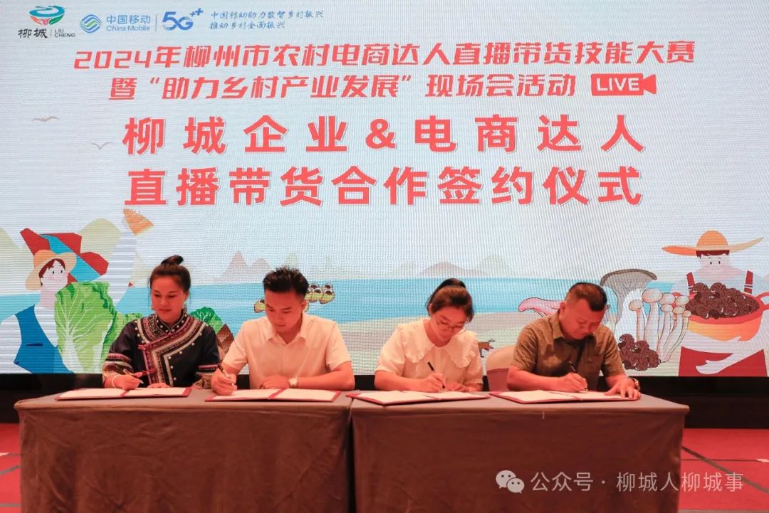 現(xiàn)場(chǎng)還舉行了企業(yè)直播帶貨合作簽約儀式,由柳城界稻香肉制品有限公司和柳州市意恒食品科技有限責(zé)任公司等企業(yè)代表分別與網(wǎng)絡(luò)名人、新農(nóng)人達(dá)成合作意向。