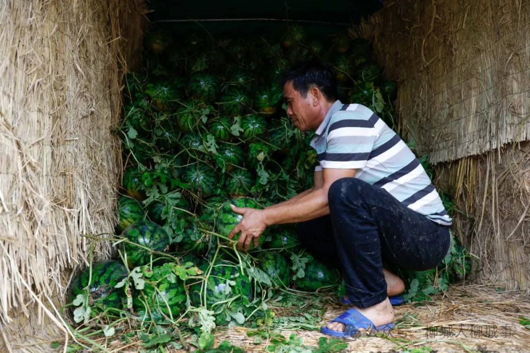 6月24日,小編來到馬山鎮(zhèn)橫山村下橫水屯,放眼望去,西瓜地綠油油的,藤蔓叢生,一個個西瓜嬌羞地藏在藤蔓下,渾圓飽滿,甚是喜人。