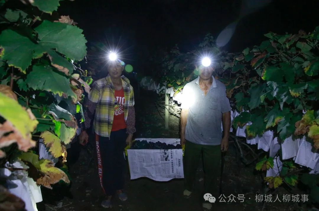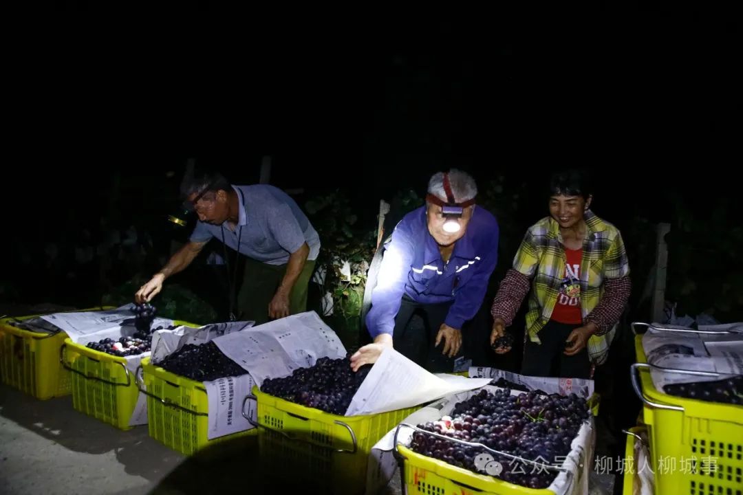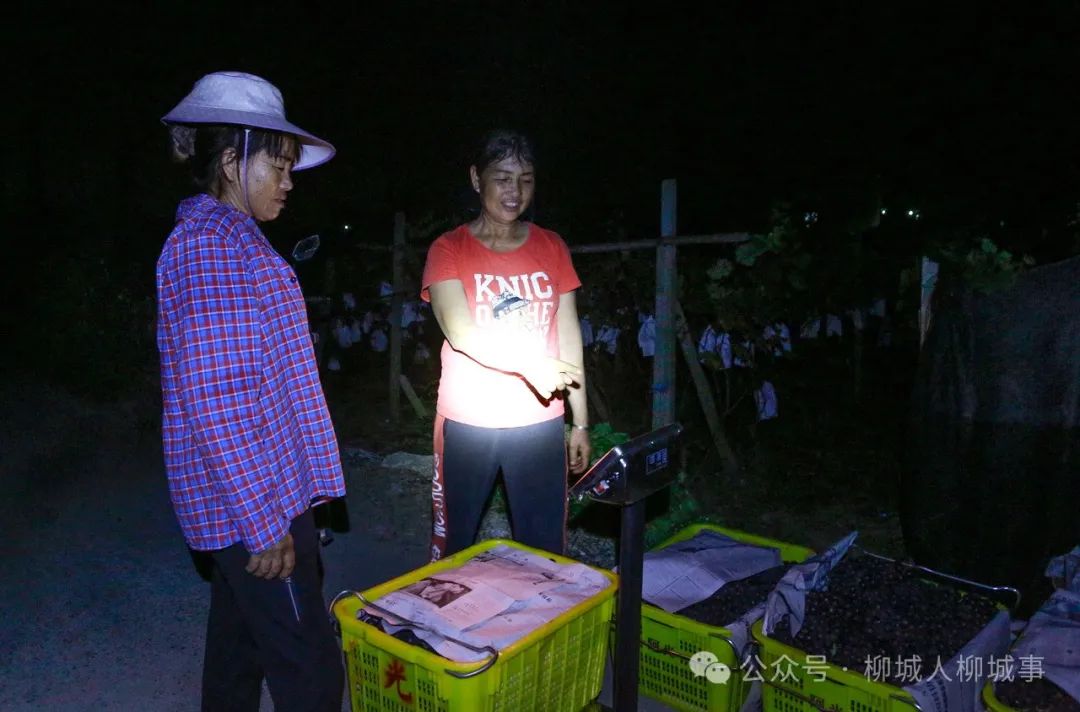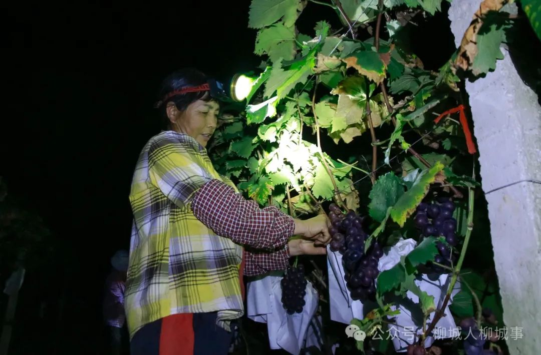 當(dāng)天是蒙英秀采摘銷售的第一批成熟的葡萄,共600斤,賣給桂林的客商。蒙英秀要趁著太陽(yáng)下山后,連夜將葡萄采摘出來(lái),避免白天太陽(yáng)溫度高,摘下來(lái)的葡萄因?yàn)楦邷兀绊戇\(yùn)輸和口感等問(wèn)題。