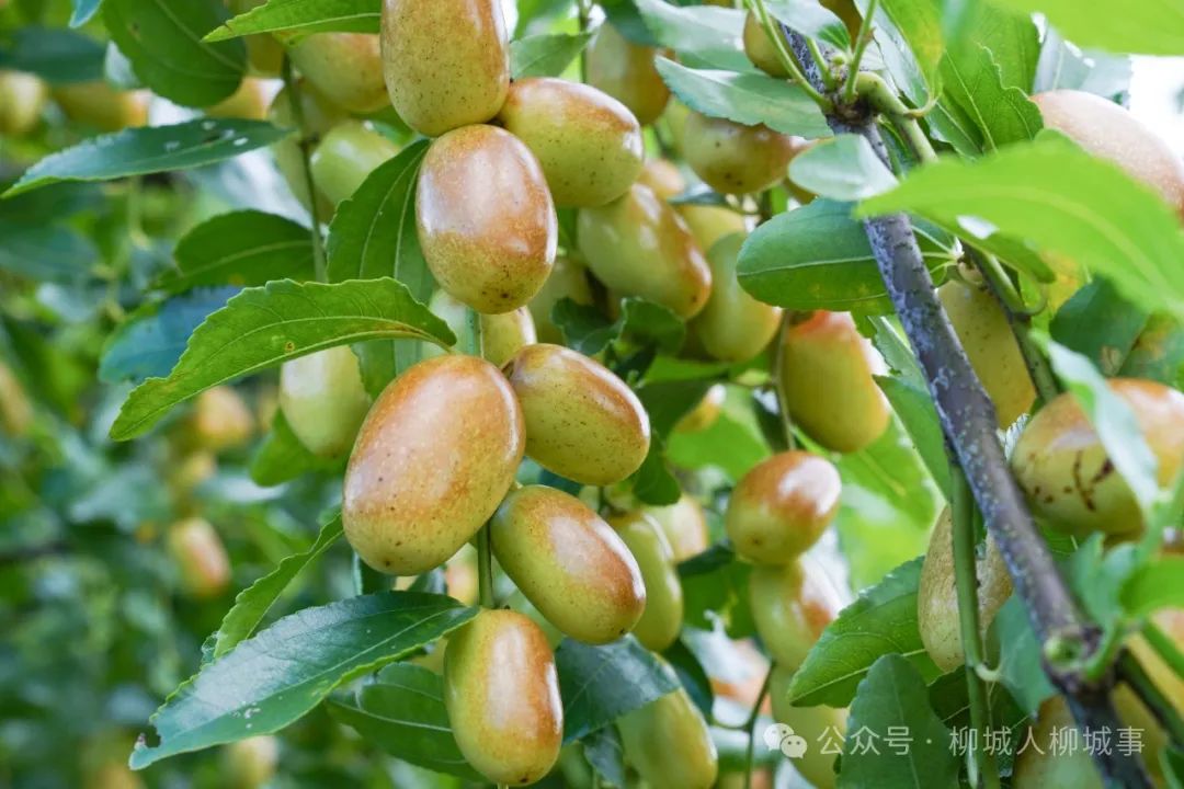 “珍珠棗”呈圓形、果皮是綠色的,比奶棗偏小,甜度比奶棗更高一些?!澳虠棥背蕶E圓形、成熟后顏色偏黃,是利用酸棗苗的根和珍珠棗的枝,相互嫁接后長(zhǎng)成的品種,形狀稍大,比較脆口。