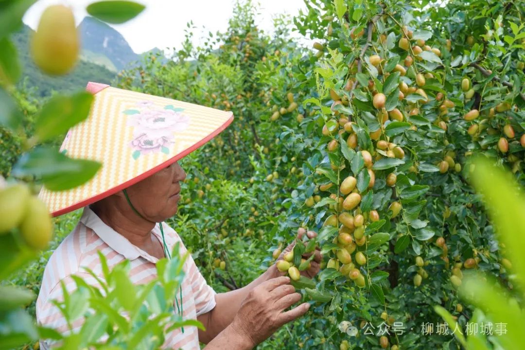進(jìn)入盛夏,脆脆甜甜的棗子正式成熟。在柳城縣太平鎮(zhèn)板貢村中村屯的一處山腳下,果農(nóng)韋東明家7畝多棗樹(shù)一列連著一列,一顆顆飽滿的棗子綴滿枝頭,果型顆粒飽滿,讓人垂涎欲滴。