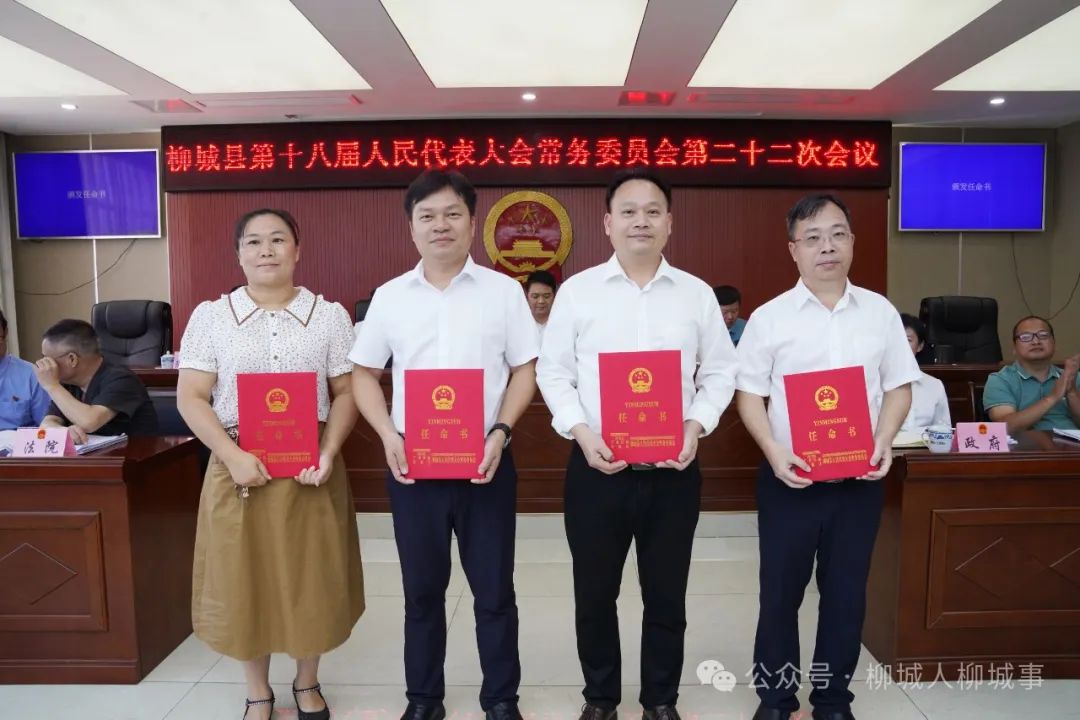 會(huì)議宣讀有關(guān)人事任免職的議案并作人事說明。經(jīng)過分組審議后,會(huì)議以電子表決的方式表決通過了以上有關(guān)報(bào)告和人事任免職事項(xiàng)。柳城縣人大常委會(huì)主任羅長(zhǎng)青向新任職人員頒發(fā)了任命書,新任職人員進(jìn)行了憲法宣誓。