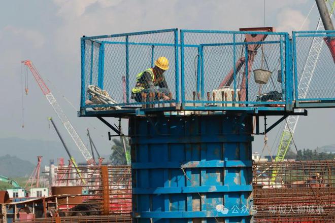 在羅鹿高速公路重點(diǎn)控制性工程融江特大橋施工現(xiàn)場(chǎng),工人頂著高溫進(jìn)行橋梁樁基、墩柱、蓋梁等施工。融江特大橋全長(zhǎng)1157米,河兩岸豎起了50多根橋墩,水上建設(shè)的4個(gè)平臺(tái)作業(yè)區(qū),已有2個(gè)平臺(tái)作業(yè)區(qū)接近完工。據(jù)了解,該施工段將爭(zhēng)取在8月上旬完成主橋樁基施工,為后續(xù)主橋的水上施工奠定基礎(chǔ)。