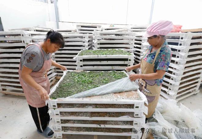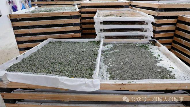 在廠房內,這位“新幫手”正在快速的給蠶寶寶撒石灰、喂桑葉,一旁的社員在給一齡、二齡蠶換紗網,打包即將出售的三齡蠶。據韋美芬介紹,這位“新幫手”是她到宜州學習參觀時,購入的一臺喂消一體小蠶生產線。該條生產線總共投入55萬元,包含機器和配套的蠶框2000個,可實現(xiàn)自動切割桑葉、噴灑石灰以及自動喂養(yǎng)等功能。通過傳送帶將一張張蠶框在出口處自動堆疊,節(jié)省喂蠶時間和節(jié)約占地面積。