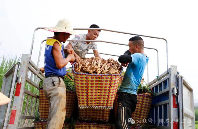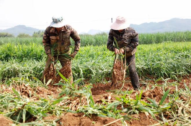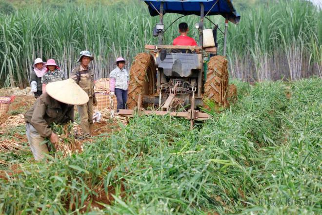 近日,在柳城縣馬山鎮(zhèn)大龍村外大龍屯的生姜地里,呈現(xiàn)出一派繁忙景象。一臺小型鉤機(jī)穿梭在一壟壟的生姜間,弄松泥土后,工人輕輕拔出一株株生姜,其他工人用剪刀把綠油油的生姜葉剪掉,再把生姜裝入籃里,一籃籃搬上車,準(zhǔn)備運(yùn)到市場。