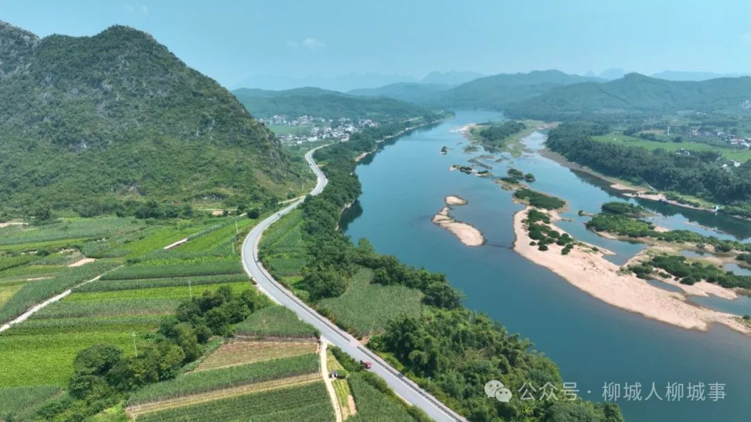 9月13日,在柳城縣大埔至鳳山沿江路,平坦的道路與村莊、江水、青山相映成趣,構(gòu)成了一幅秀麗的生態(tài)畫卷。