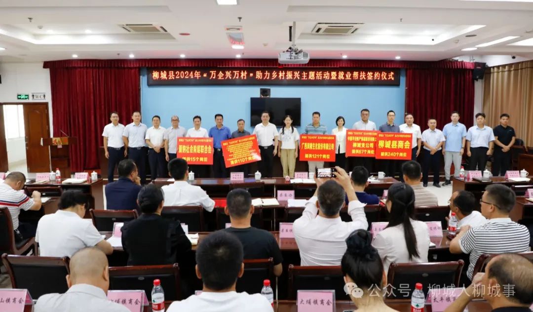 10月10日,柳城縣召開(kāi)“萬(wàn)企興萬(wàn)村”助力鄉(xiāng)村振興主題活動(dòng)暨就業(yè)幫扶簽約儀式,號(hào)召?gòu)V大企業(yè)家、愛(ài)心人士等積極參與到鄉(xiāng)村振興建設(shè)工作中,共同推進(jìn)柳城縣鞏固拓展脫貧攻堅(jiān)成果同鄉(xiāng)村振興有效銜接工作取得新的成效。