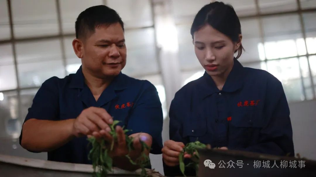 初到茶廠,面對(duì)周?chē)际浅床琛按髱煛保?0歲的劉月娟自嘲自己妥妥的是一個(gè)“小白”,于是拜“廣西工匠”、伏虎茶廠廠長(zhǎng)何海華為師。在何海華的指導(dǎo)下,劉月娟逐步掌握了茶葉加工的殺青、揉捻等全套工序。