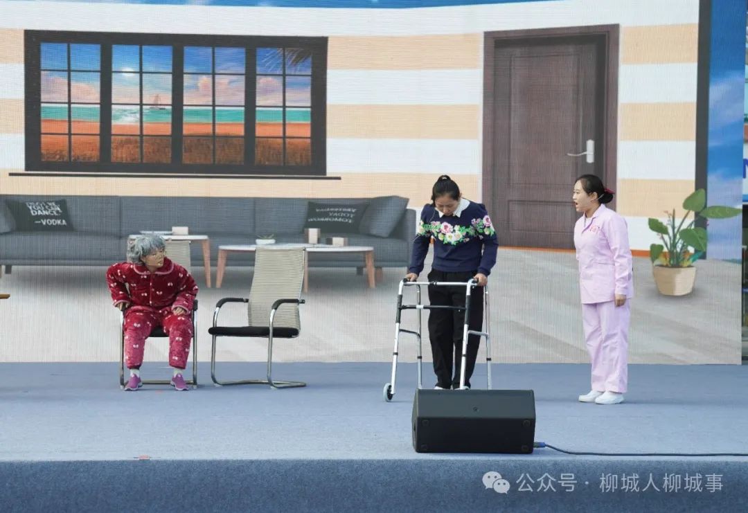 活動現(xiàn)場,柳州市老齡委常務副主任、市人民政府副市長盧柳屏,柳城縣縣長何韜依次上臺致辭;彩調(diào)表演《十月花》、太極表演等節(jié)目陸續(xù)上演;相關人員展示了“居家場景下指導老人使用助行器行走”“機構場景下的穿脫衣服訓練”兩個老年人康養(yǎng)護理過程,就如何對行動不便的老人進行心理疏導、幫助他們掌握助行器使用方法、指導行動不便的老人進行基本的穿脫衣服訓練等進行全方位講解。