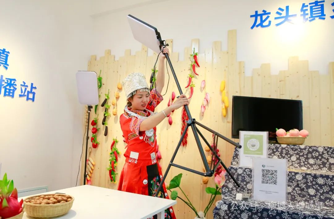走訪工作結(jié)束后,她來到龍頭鎮(zhèn)鄉(xiāng)村振興共享直播站。在那里,她換上靚麗的民族服裝,打開聚光燈,擺放好手機,進入抖音直播間,然后打招呼、介紹自己、聊龍頭鎮(zhèn)這個季節(jié)有什么好吃好玩的……一連串“規(guī)定動作”完成后,她心中的煩惱也慢慢“浮出水面”。