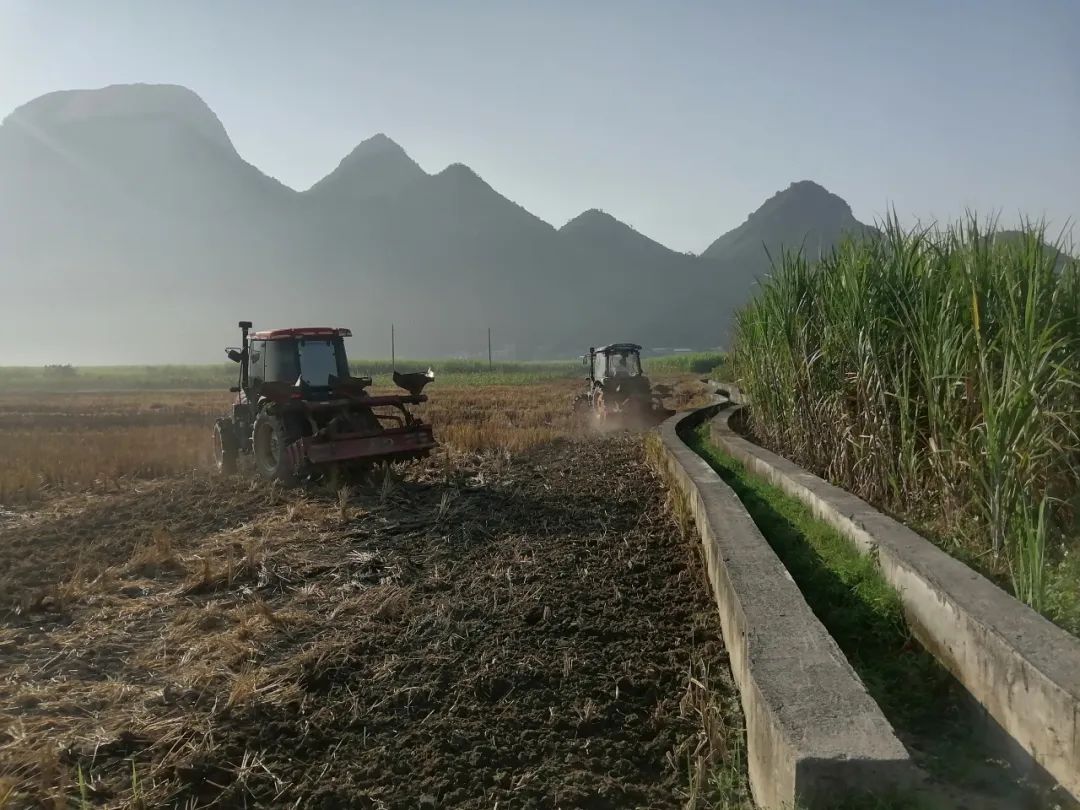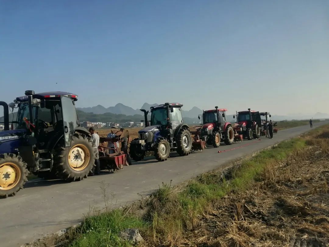 翻耕田地,播種冬季油菜,在拉燕村、黃沖村田間地頭呈現(xiàn)一派繁忙景象。“轟隆隆......”隨著五臺(tái)大型機(jī)械在田間來回穿梭,大型旋耕機(jī)翻整田地,機(jī)械化耕地播種一體機(jī)完成起壟、播種、施肥作業(yè)。全程只需要5名農(nóng)機(jī)手操作,一天可以完成近300畝的油菜種植。機(jī)械化作業(yè)大大降低了人工成本,提高了種植效率。