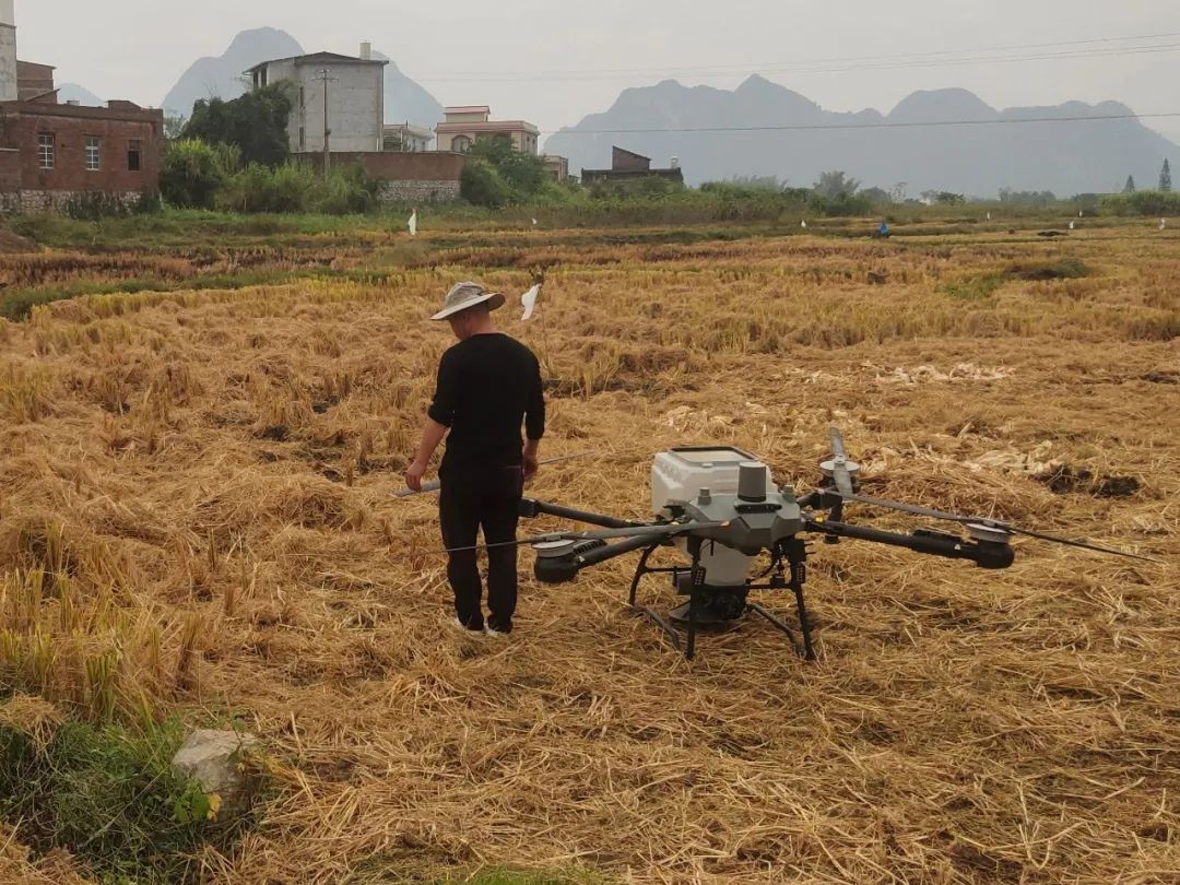 在肯社村祿村屯的作業(yè)現(xiàn)場(chǎng),只見載滿種子的無人機(jī),伴隨著陣陣“轟鳴聲”迅速起飛。飛到預(yù)定位置后,在機(jī)手的遙控操作下正式開始紅花草種子飛播作業(yè)。無人機(jī)時(shí)而低空盤旋,時(shí)而高空飛舞,來回穿梭。不一會(huì)兒,圓滿完成300畝稻稻肥飛播作業(yè)。