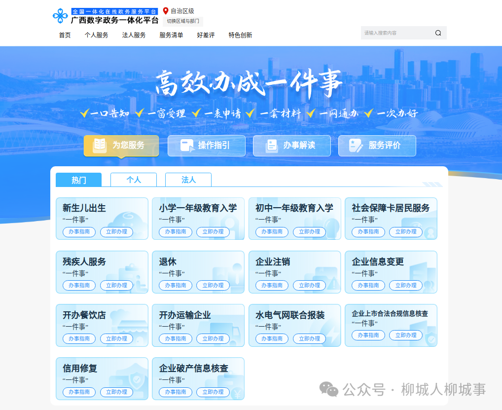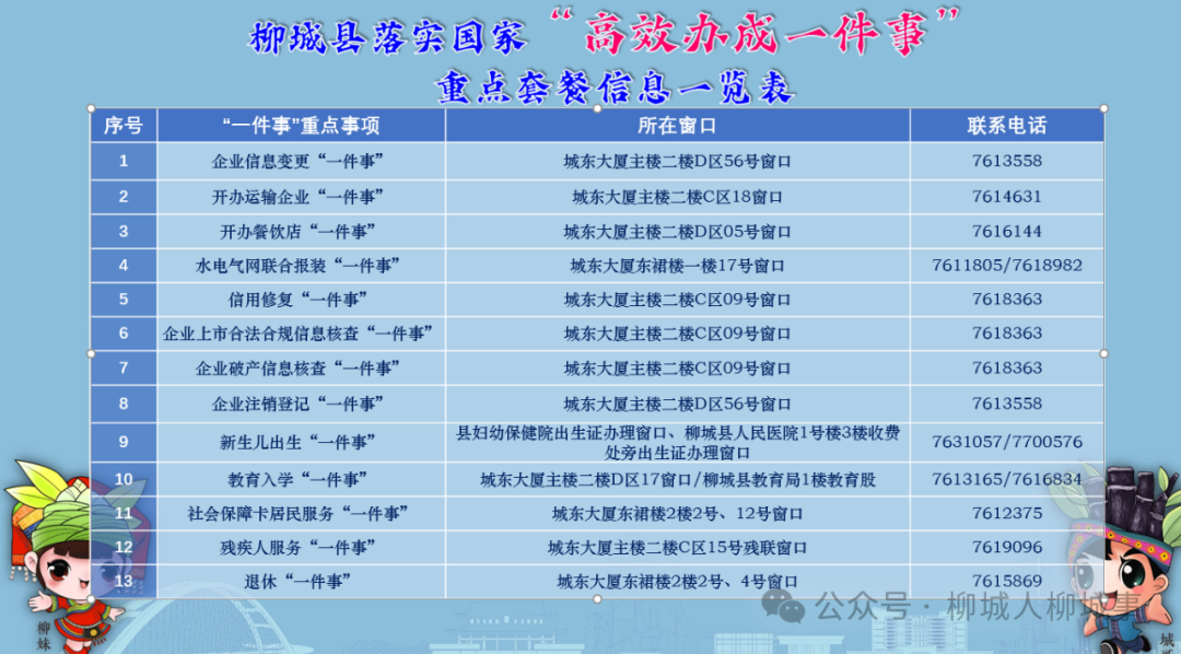 今年初,國(guó)務(wù)院印發(fā)《關(guān)于進(jìn)一步優(yōu)化政務(wù)服務(wù)提升行政效能推動(dòng)“高效辦成一件事”的指導(dǎo)意見》,把“高效辦成一件事”作為優(yōu)化政務(wù)服務(wù)、提升行政效能的重要抓手,為人民群眾帶來更好的政務(wù)服務(wù)體驗(yàn)。作為廣西唯一縣份被列為國(guó)家“高效辦成一件事”示范縣,今年,柳城縣將高標(biāo)準(zhǔn)推進(jìn)“高效辦成一件事”改革,打造“城心如意”營(yíng)商環(huán)境品牌,著力構(gòu)建行政審批制度改革先行區(qū)域。“高效辦成一件事”涉及與群眾生活、企業(yè)生產(chǎn)經(jīng)營(yíng)息息相關(guān)的事項(xiàng),如新生兒出生、退休、社會(huì)保障卡居民服務(wù)、水電氣網(wǎng)聯(lián)合報(bào)裝、企業(yè)信息變更等等。哪些事項(xiàng)可以一次辦?如何去辦?在哪里辦?以下信息如對(duì)你有用,請(qǐng)收藏或轉(zhuǎn)發(fā):
