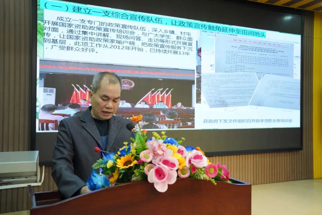 活動(dòng)中,柳城縣教育局資助中心工作人員匯報(bào)了柳城縣生源地信用助學(xué)貸款工作成效及經(jīng)驗(yàn)。