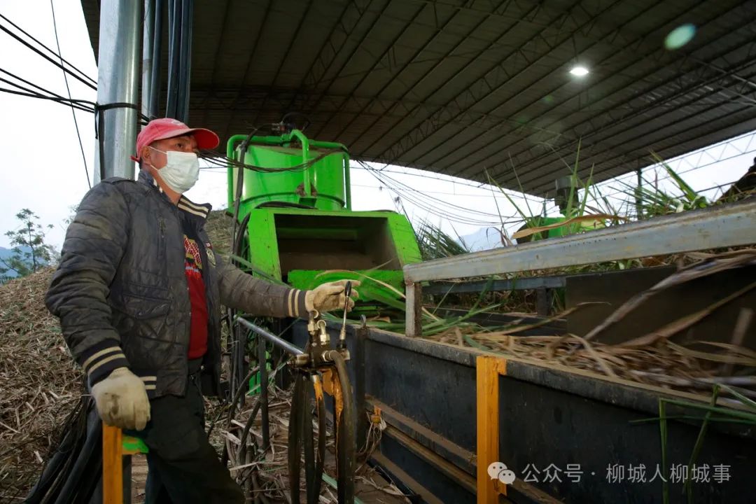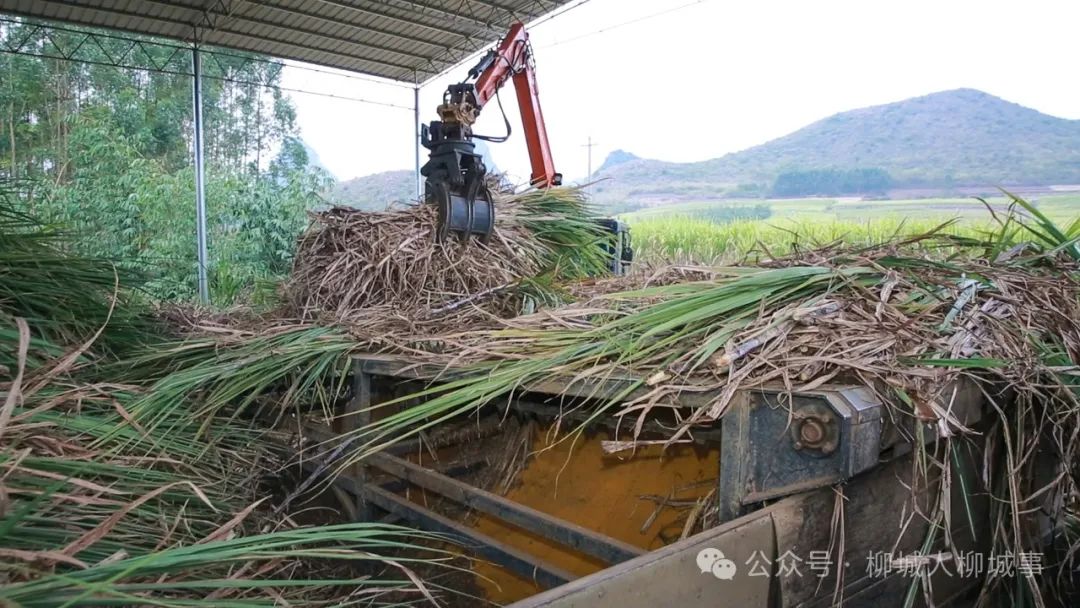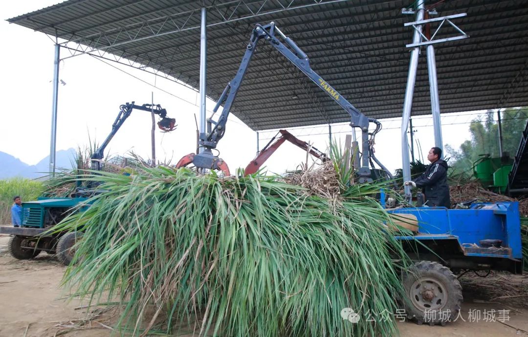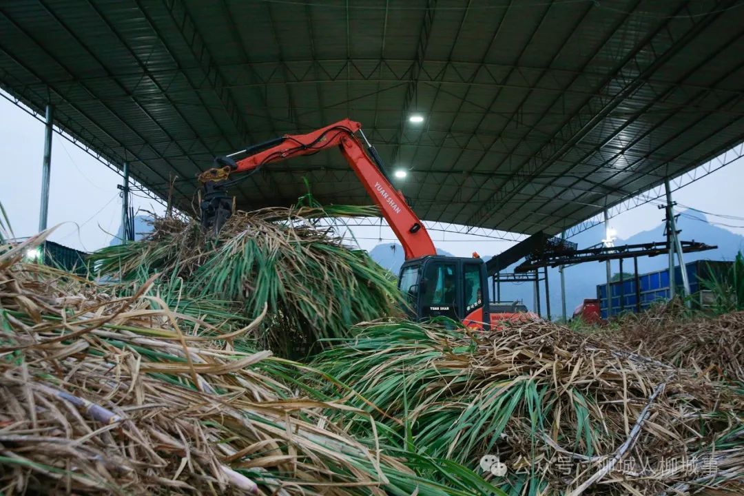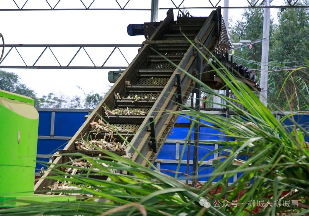 眼下正值甘蔗砍收的忙碌時(shí)節(jié)。12月12日傍晚,柳城縣社沖鄉(xiāng)倉(cāng)貝村家庭農(nóng)場(chǎng)甘蔗分步式機(jī)收除雜服務(wù)點(diǎn),1臺(tái)甘蔗分步式機(jī)收設(shè)備開(kāi)足了馬力運(yùn)轉(zhuǎn)作業(yè)。剝?nèi)~、切段、裝載等工序無(wú)縫配合,一輛輛滿(mǎn)載甘蔗的車(chē)輛從蔗地里陸續(xù)運(yùn)往此處,開(kāi)始它們的“凈化之旅”。