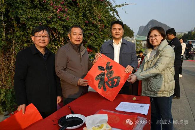 柳州市文聯(lián)向柳城縣贈(zèng)送了一幅由自治區(qū)、柳州市、柳城縣書法家、美術(shù)家代表共同創(chuàng)作的《報(bào)春圖》,向柳城人民致以節(jié)日的問候。