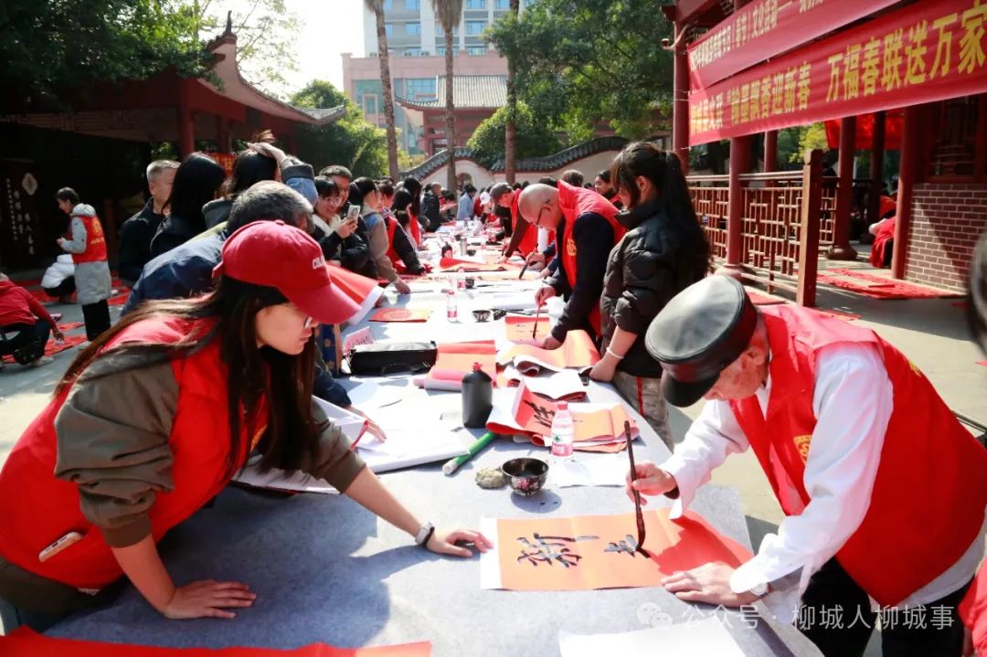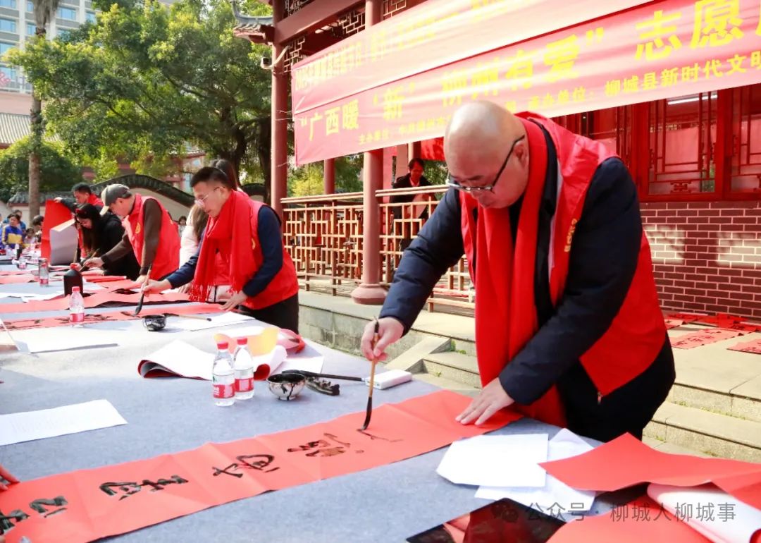 柳城縣是“廣西書法之鄉(xiāng)”。春聯(lián)作為中華優(yōu)秀傳統(tǒng)文化的一部分,是人們表達(dá)新春祝福與新年愿望的重要方式。一直以來,柳城縣都有在春節(jié)前夕,聯(lián)合本土?xí)◥酆谜邔懘郝?lián)送祝福的傳統(tǒng),將平安、和諧、祥和的氛圍傳達(dá)給轄區(qū)群眾,共賀新春。