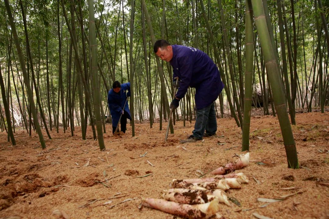 楊國(guó)華的種植之路要追溯到 2016 年。一次偶然的機(jī)會(huì),楊國(guó)華岳母從浙江順手帶回 3 根象牙筍。抱著試一試的心態(tài),楊國(guó)華開(kāi)啟了象牙筍種植之路。剛開(kāi)始,一切都充滿挑戰(zhàn)。象牙筍對(duì)生長(zhǎng)環(huán)境要求獨(dú)特,既喜水又怕積水,這可難住了楊國(guó)華。他四處請(qǐng)教,反復(fù)摸索,最終發(fā)現(xiàn)村子里那些有點(diǎn)斜坡的畬地,土質(zhì)疏松、排水良好,正是象牙筍生長(zhǎng)的絕佳之地。隨著經(jīng)驗(yàn)的積累,他的種植面積逐漸擴(kuò)大到 20 多畝。經(jīng)過(guò)不斷嘗試,種植方法慢慢摸索出來(lái)了。象牙筍種下第二年就會(huì)長(zhǎng)出小筍, 3至4年 就能進(jìn)入豐產(chǎn)期,一畝地能產(chǎn)3000斤到5000 斤。
