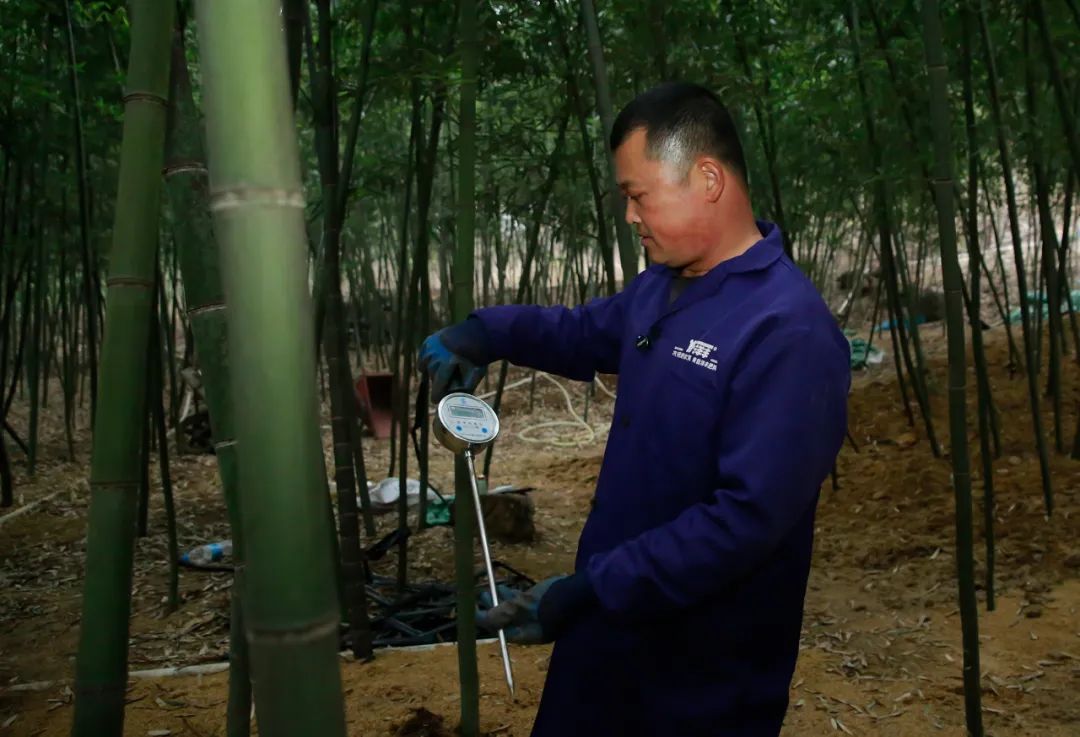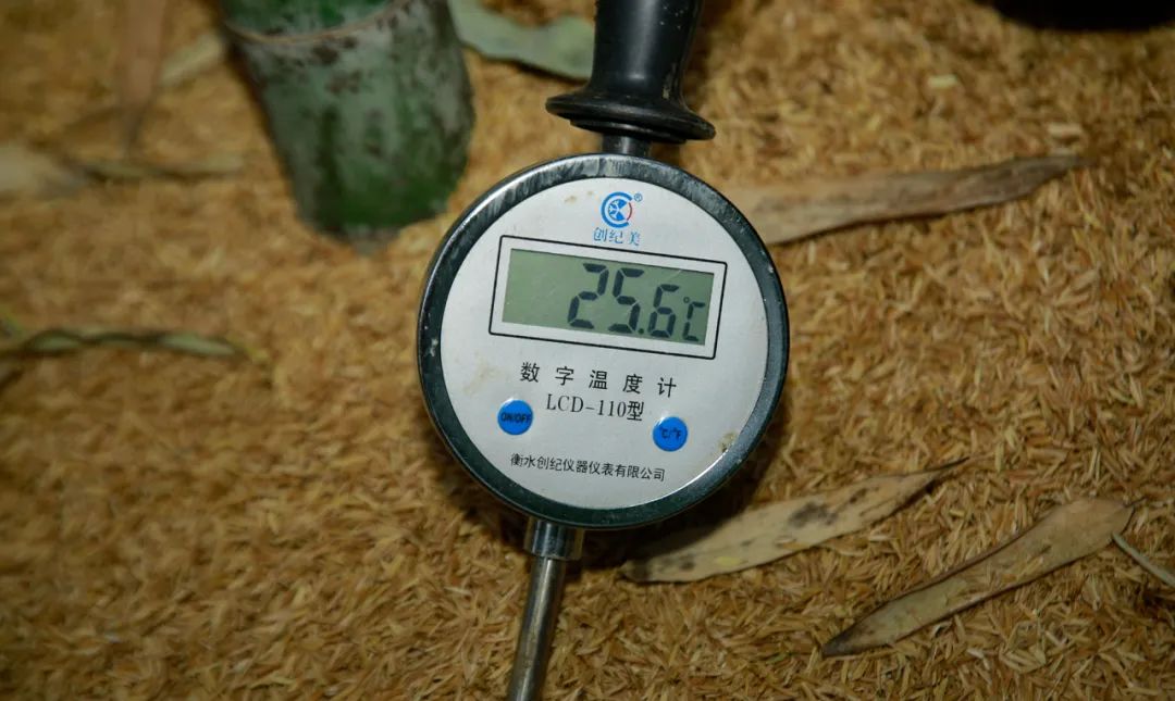 每天早上9點(diǎn)左右,楊國(guó)華和妻子都會(huì)穿梭在茂密的竹林間,給種植象牙筍的竹林測(cè)地溫,只有地溫在 23℃到 26℃之間,筍才能茁壯成長(zhǎng)。溫度低了,就得多蓋點(diǎn)谷殼保暖;溫度高了,就淋點(diǎn)水,或者把谷殼扒開(kāi)降降溫。