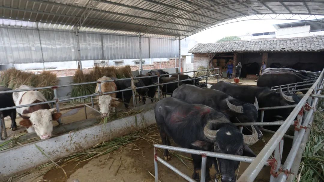 元宵節(jié)前兩天,踏入位于柳城縣大埔鎮(zhèn)洛崖牛市附近的一處院子,一股混合著草料與牲畜的氣息撲面而來(lái)。眼前,一頭頭健壯的牛在悠閑地咀嚼、踱步、睡覺(jué),整個(gè)環(huán)境跟一般的牛舍完全不一樣。