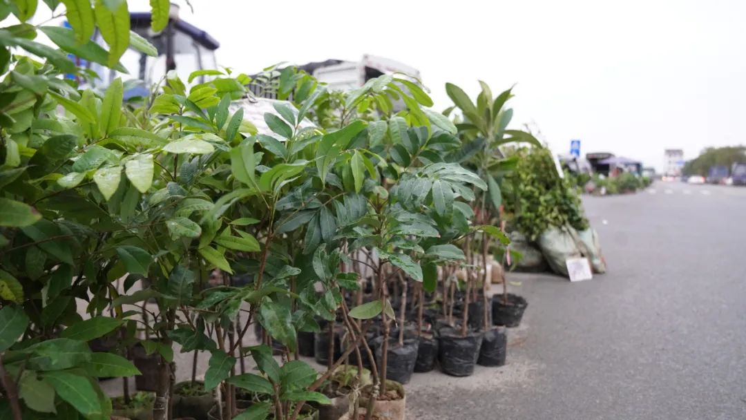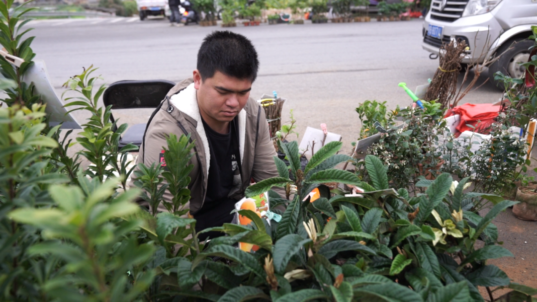 凌晨6點,陳老板就已抵達攤位,將苗木擺放妥當。陳老板介紹說,目前他所銷售的苗木品種多達二十余種,價格區(qū)間在每株5元至30元之間。其中,黃皮果和枇杷的樹苗最為暢銷,均價約每株10元?!包S皮果滋味酸甜,夏季食用既能滿足口腹之欲,又有消食解暑的功效,所以買的人多?!标惱习逡贿吥托闹v解,一邊有條不紊地整理著攤位前的黃皮果苗。