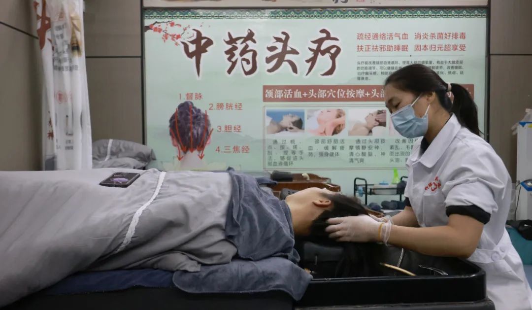 “僅中醫(yī)特色頭療一項(xiàng),2024年我們就接待群眾9555人次?!绷伶?zhèn)中心衛(wèi)生院公衛(wèi)科主任陸袁明介紹,中醫(yī)洗頭并非簡單的清潔,而是依據(jù)中醫(yī)經(jīng)絡(luò)學(xué)說,通過特制的中藥洗發(fā)水和專業(yè)的按摩手法,刺激頭部穴位,促進(jìn)血液循環(huán),達(dá)到滋養(yǎng)頭發(fā)、緩解疲勞、改善睡眠等功效。