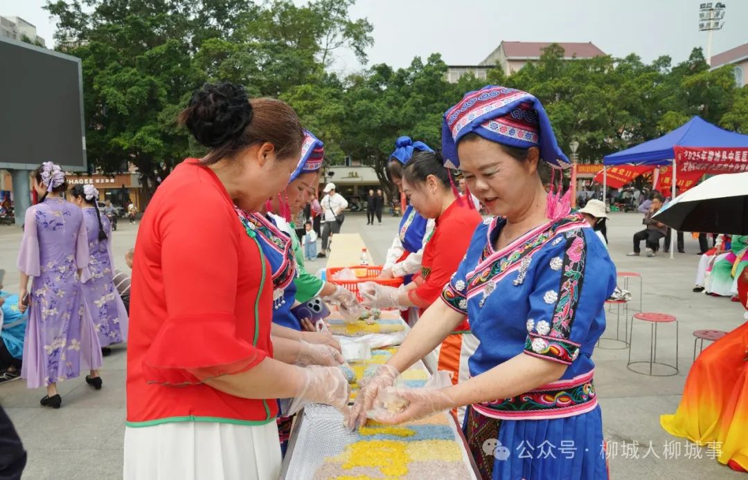 當天,現(xiàn)場還開展了跳竹竿舞、吃五色糯米飯、義診等活動。