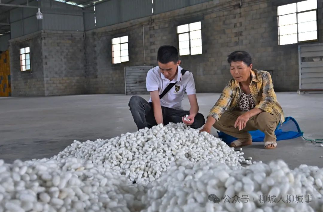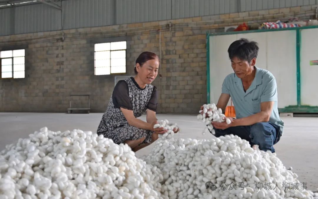 眼下,柳城縣今年第一批蠶繭正式上市,各個收繭站熱鬧起來,收購價在32元每斤上下波動。4月30日清晨,寨隆鎮(zhèn)獨石村獨石屯的覃良獻開著五菱車,載著自家首批蠶繭趕往沖脈鎮(zhèn)雙梅繭站?!敖衲旮珊?,桑葉長得一般?!?覃良獻邊稱重邊介紹,他種了6畝桑樹,因受天氣影響,第一批只養(yǎng)了半張蠶。即便如此,憑借悉心照料,仍收獲了150多斤蠶繭。趕上當前利好行情,這批蠶繭賣出了32元/斤的好價格,入賬近5000元。在沖脈鎮(zhèn)沖脈村東明屯,村民廖銘恩也即將迎來豐收時刻。他養(yǎng)殖的2張五齡蠶當晚就要上蔟結繭,三天后就能變現(xiàn)。廖銘恩種植了20畝桑樹,采用半自動喂養(yǎng)模式,還雇了3位村民幫忙采摘桑葉,大大減輕了勞作壓力。得知當前蠶繭行情,他難掩喜悅:“這批收成肯定不錯!”蠶桑產業(yè)是柳城縣鞏固拓展脫貧攻堅成果、銜接鄉(xiāng)村振興的“5+2” 特色產業(yè)之一。近年來,柳城縣持續(xù)發(fā)力,通過政策扶持、技術培訓,鼓勵農民擴大桑樹種植規(guī)模,優(yōu)化產業(yè)結構。如今,全縣桑園面積已達14.6萬畝,23個脫貧村中就有13個發(fā)展了桑蠶產業(yè)。2024年,全縣鮮繭產量達2.3萬噸,產值突破12億元,帶動約2.5萬戶農戶參與,戶均養(yǎng)蠶收入近5萬元。