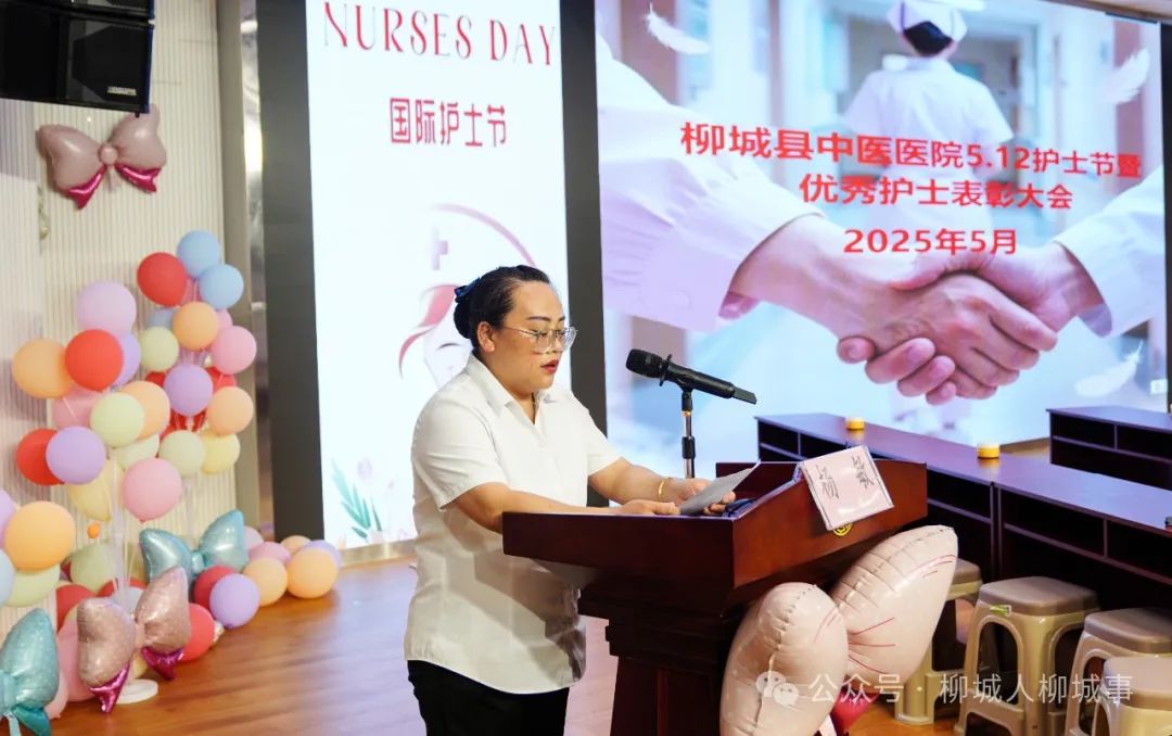 活動中,柳城縣中醫(yī)醫(yī)院2024年度優(yōu)秀護士代表上臺發(fā)言,分享了自己在護理崗位上的經(jīng)驗與感悟。