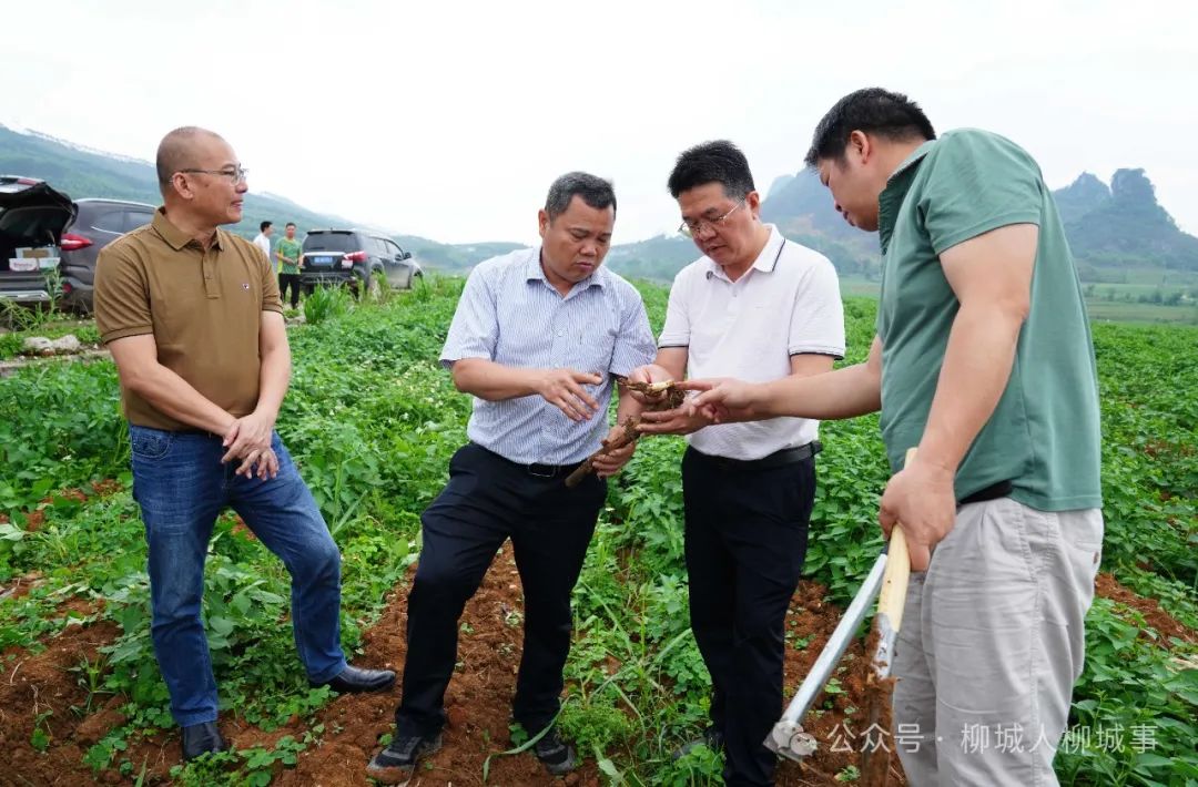 吳建明一行先后到柳城縣沙埔鎮(zhèn)大安村楊家屯、太平鎮(zhèn)黃宜村隘計屯、大埔鎮(zhèn)龍臺村長龍屯等甘蔗種植地里,實地查看甘蔗的生長狀況。針對無法發(fā)芽的甘蔗,他們使用鋤頭、鏟子等工具進行挖掘,深入探究無法出芽的原因。