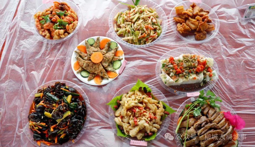 當(dāng)天,特色美食評比與仫佬族村宴在蓬坡楓樹林長廊舉行,參賽選手們各顯神通,精心制作了“吊燒乳鴿”、“肉沫珍珠玉米”、“稻田金鹵鵝”和“獨山蕎麥餅”等色香味俱佳的美食,評委們一一品嘗、打分,游客們也一同盡享仫佬風(fēng)味,感受仫佬風(fēng)情。