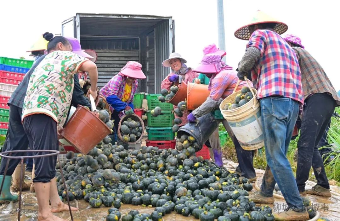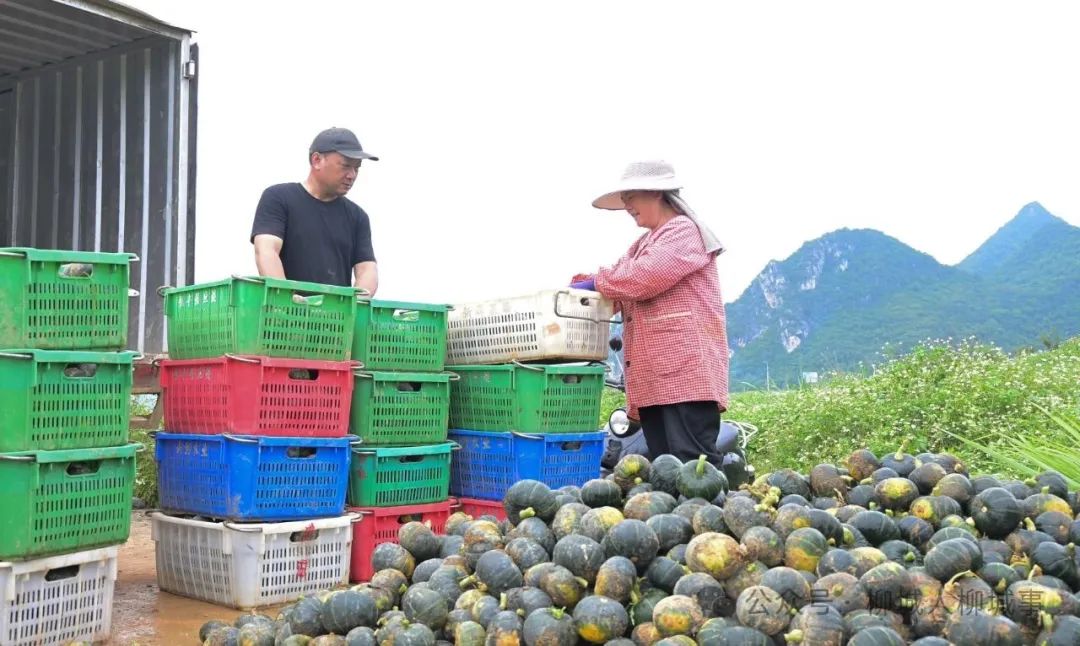 近日,柳城縣社沖鄉(xiāng)社沖村西盤龍屯的田間地頭一派繁忙景象,飽滿的貝貝南瓜鋪滿田壟,來(lái)自各地的客商穿梭其間,爭(zhēng)相訂購(gòu),每天銷量約?2?萬(wàn)斤。