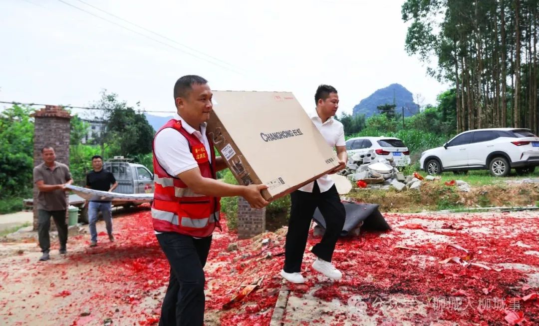 6月7日,在柳城縣東泉鎮(zhèn)雷塘村保社屯村民粟遠(yuǎn)亮家里,駐村第一書記沈洪民和社會愛心人士為粟遠(yuǎn)亮送來了新的家電家具,恭賀粟遠(yuǎn)亮喬遷新居。