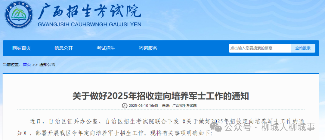 (一)招生宣傳。自治區(qū)征兵辦公室會同自治區(qū)招生考試院依托廣西招生考試院網(wǎng)站、“柳園清風”微信公眾號、“廣西征兵”微信公眾號發(fā)布定向培養(yǎng)軍士招生政策信息;定向培養(yǎng)軍士高校通過印發(fā)簡章、發(fā)布信息、開展咨詢等形式,向考生及教師、家長宣傳報考的條件、程序、專業(yè)、數(shù)量、培養(yǎng)目標、待遇、未來工作方向等相關信息。
