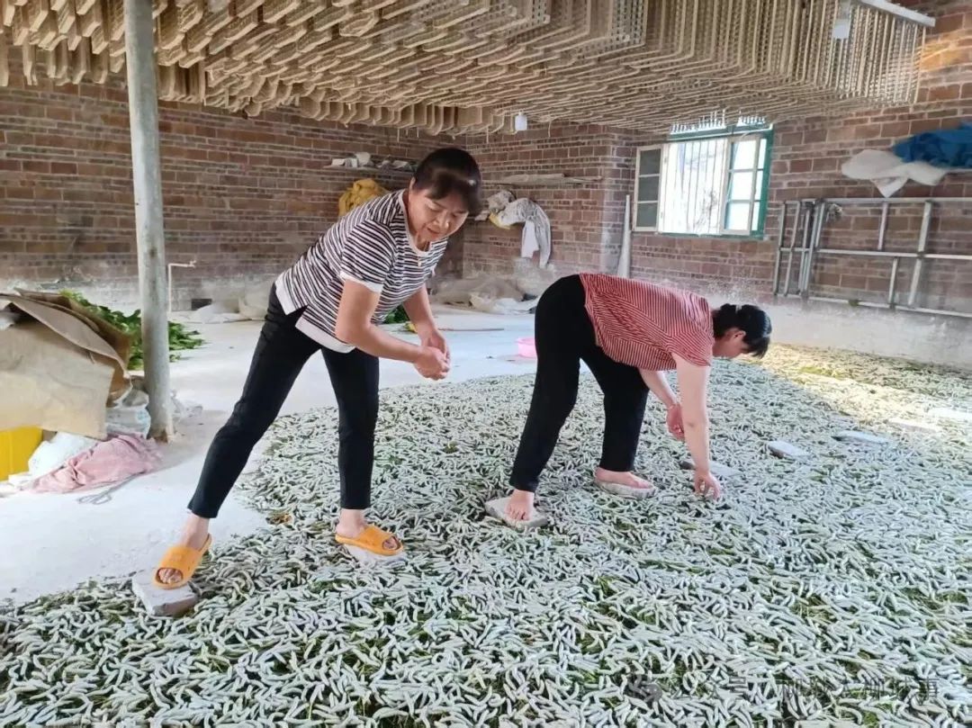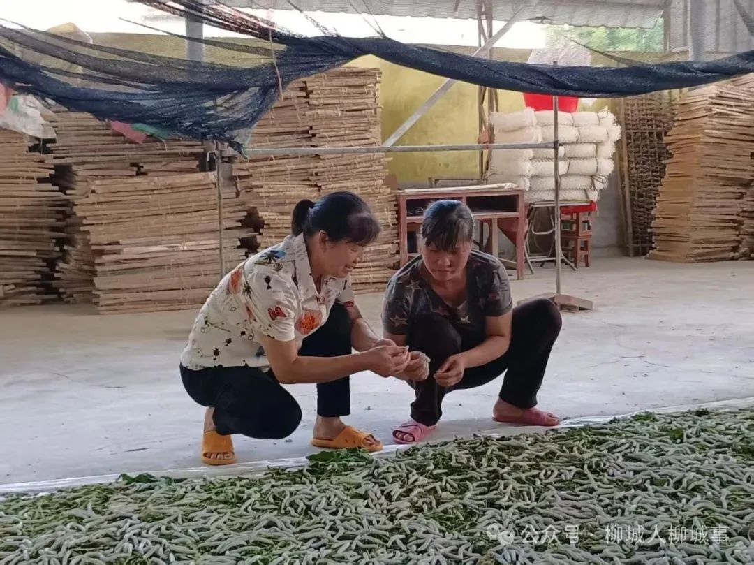 “淑玲姐,我家蠶個(gè)頭大小不一!”正在喂蠶的韋淑玲接到韋柳明的求助。這樣的場(chǎng)景已成常態(tài)——只要有空,韋淑玲都會(huì)入戶幫查看,觀察蠶房通風(fēng)、溫度情況,并教大家用藥、選蠶等養(yǎng)蠶技術(shù)。